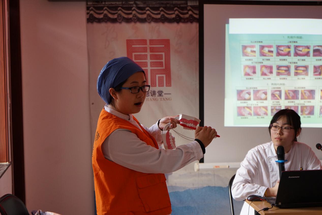 首先,志愿者为来自天坛北里社区的40余位社区老人进行了口腔常见疾病知识普及和口腔卫生保健的科普讲座。之后志愿者们为社区老人们进行了口腔义诊咨询活动,医护人员为每一位前来咨询的患者答疑解惑、热情服务,深得社区老人们的赞许。为了进一步推广网络预约挂号,志愿者们手把手教社区老人们如何使用“京医通”微信预约挂号、缴费等。同时还进行了“守护天使”志愿者招募。