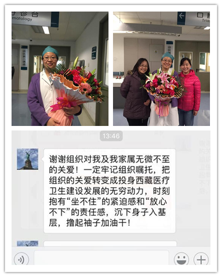 参加“博士服务团”到西藏挂职的周建同志远在拉萨,不能陪新婚的妻子欢度节日,院党委代他送去关心和祝福,看到妻子手捧鲜花的美丽笑颜,周建同志表示“一定牢记组织嘱托,把组织的关爱转变成投身西藏医疗卫生建设发展的无穷动力,时刻抱有“坐不住”的紧迫感和“放心不下”的责任感,沉下身子入基层,撸起袖子加油干”。