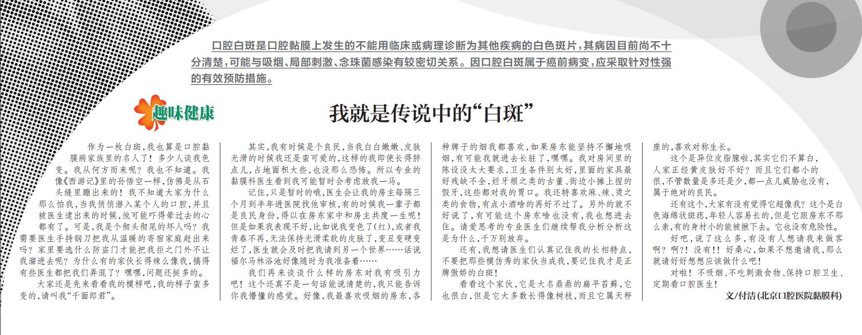 【北京青年报】我就是传说中的“白斑”(B7版 健康守望)