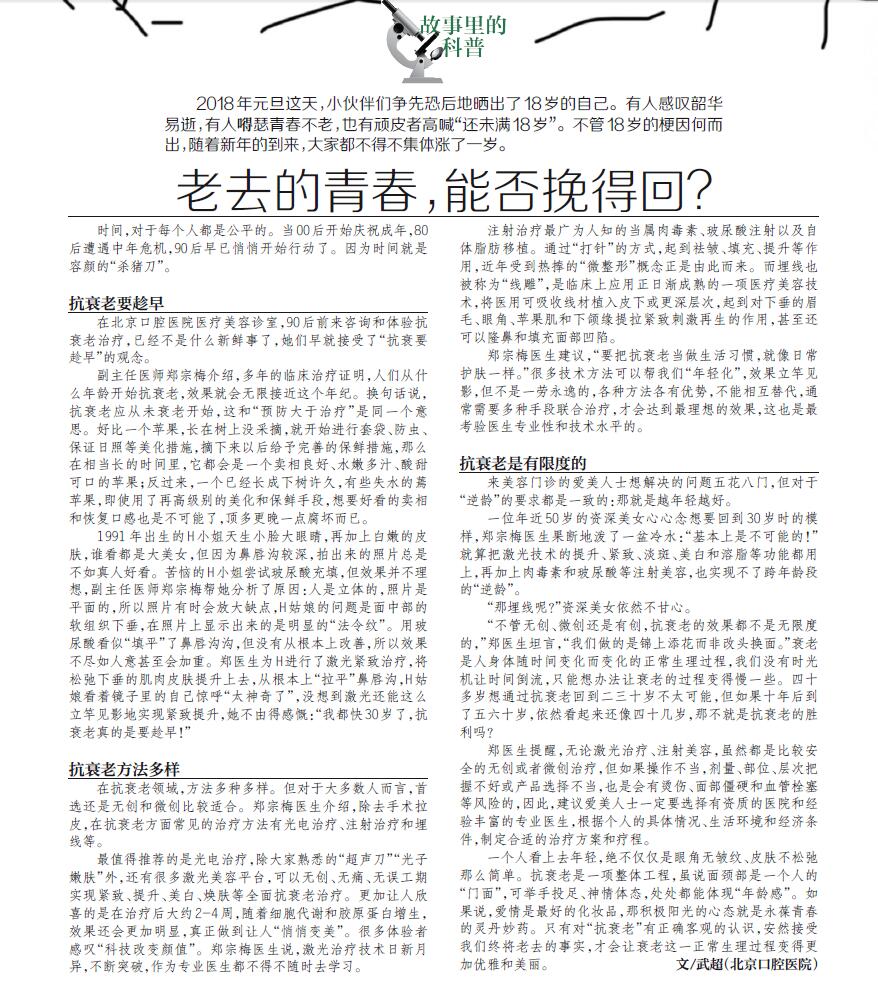 【北京青年报】老去的青春,能否挽得回?(2018年1月26日 B11版 健康守望)