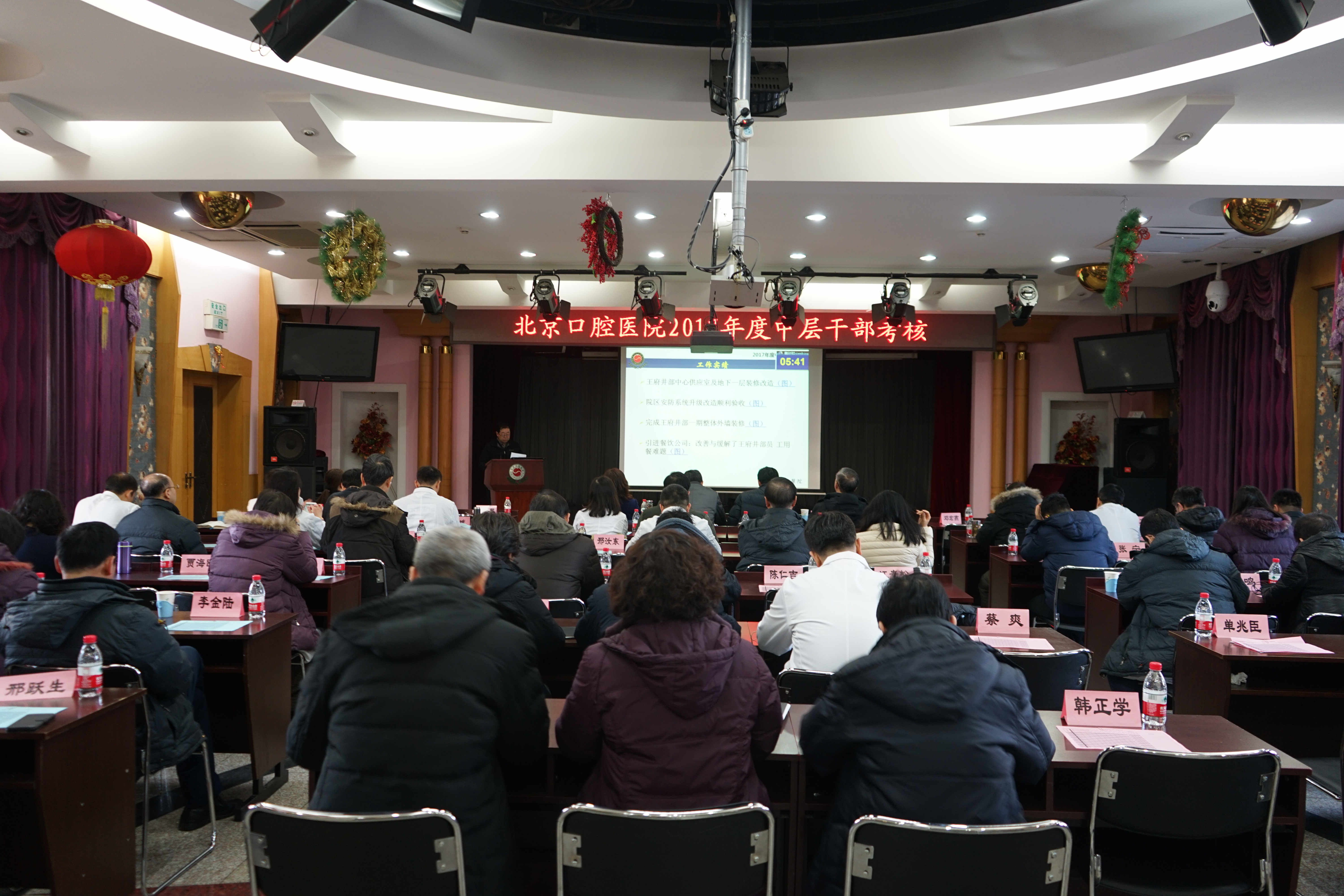 院党委于2018年1月制定下发了《北京口腔医院2017年度中层干部述职测评考核方案》,组织开展2017年度中层干部述职考评工作。为了更加全面、客观、精确地对中层干部进行考核,基于2016年度考核分析,在广泛征求意见建议的基础上,本次考核对职能处室中层干部考核细则进行了修订完善。