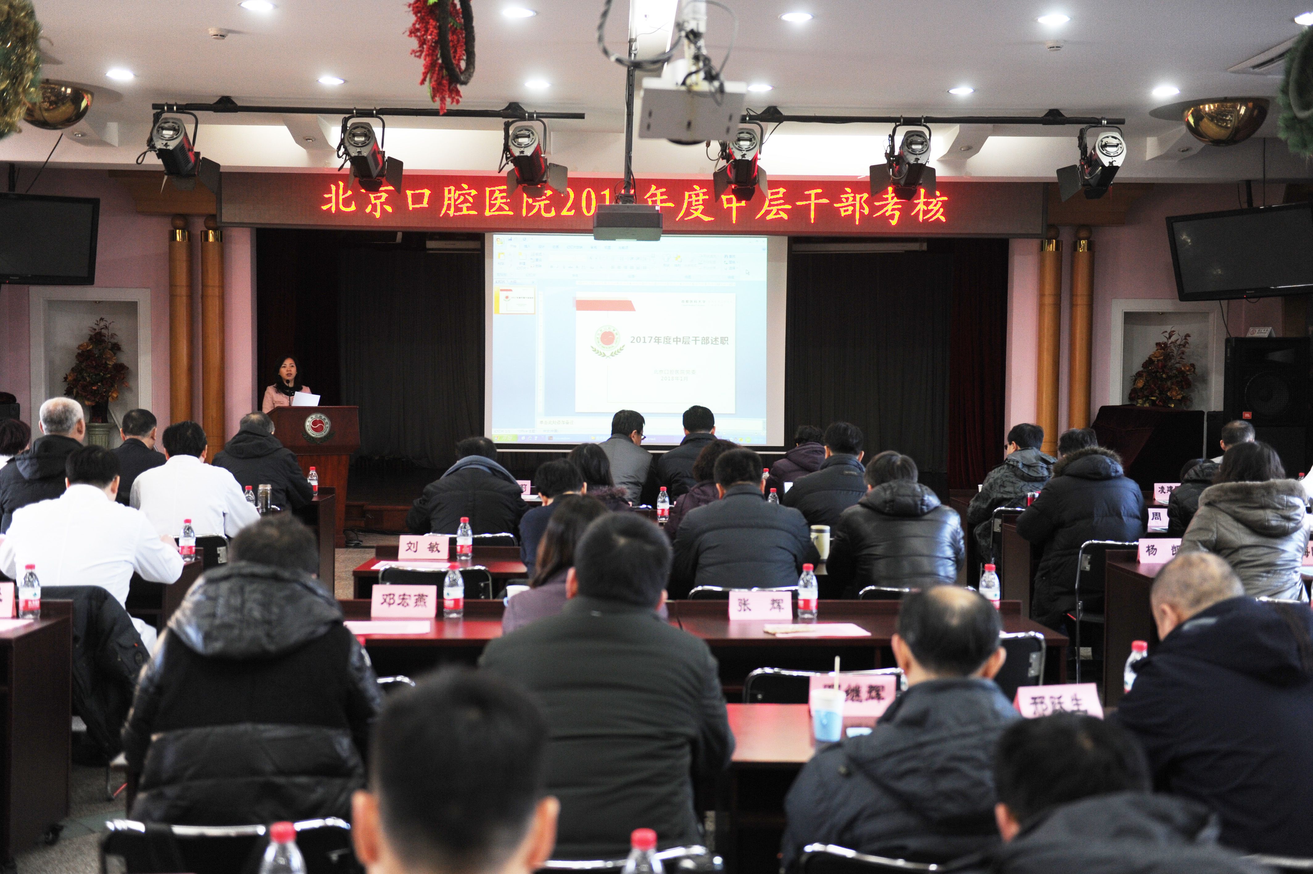 为加强中层干部履职管理,提高干部整体素质与实际工作能力,院党委于1月4日至2月5日组织进行了2017年度中层干部述职考评工作。按照《北京口腔医院2017年度中层干部述职测评考核方案》工作部署,各医疗医技科室中层干部已于2月5日前完成了科内述职。由党委委员、纪委委员、党办、院办、纪检监察办公室以及人力资源处等相关部门人员组成的考核组,共组织完成医疗医技科室科内述职24场次,全院30位医疗医技科室中层干部面向科内广大职工进行述职,倾听群众意见建议,接受民主评议。