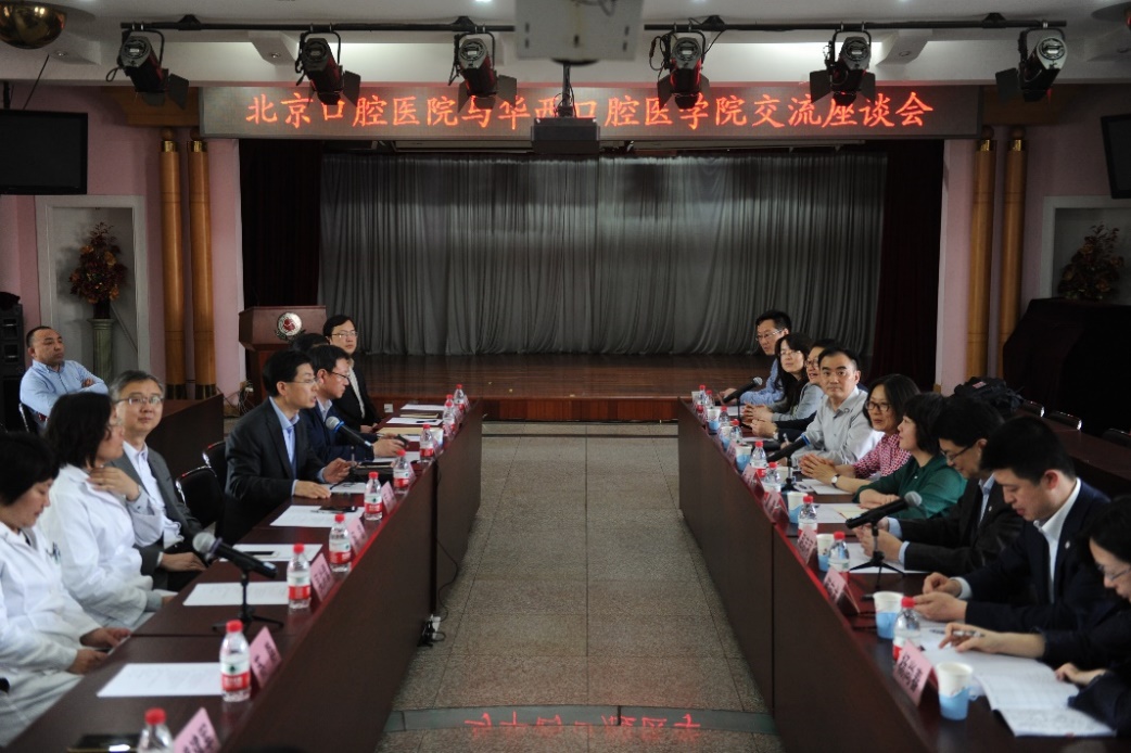 4月18日下午,四川大学华西口腔医学院院长叶玲、党委书记谭静率学院党政领导班子及院办、科研部、医务部、信息科等职能部门负责人一行9人来我院进行调研交流。