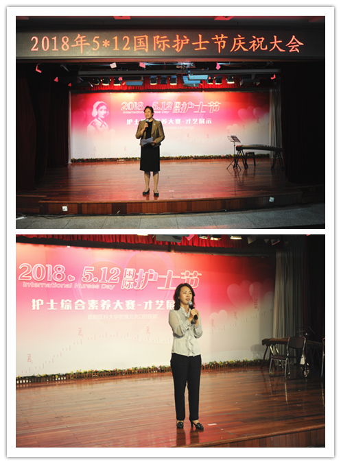 5月11日下午,我院2018年“5·12”国际护士节庆祝大会在多功能厅举行。本次庆祝活动以“护士综合素养大赛——才艺展示”为主题,旨在激励全院护理同仁继承和发扬南丁格尔精神,提高综合素质,让全院护理人员度过一个轻松愉快的节日。