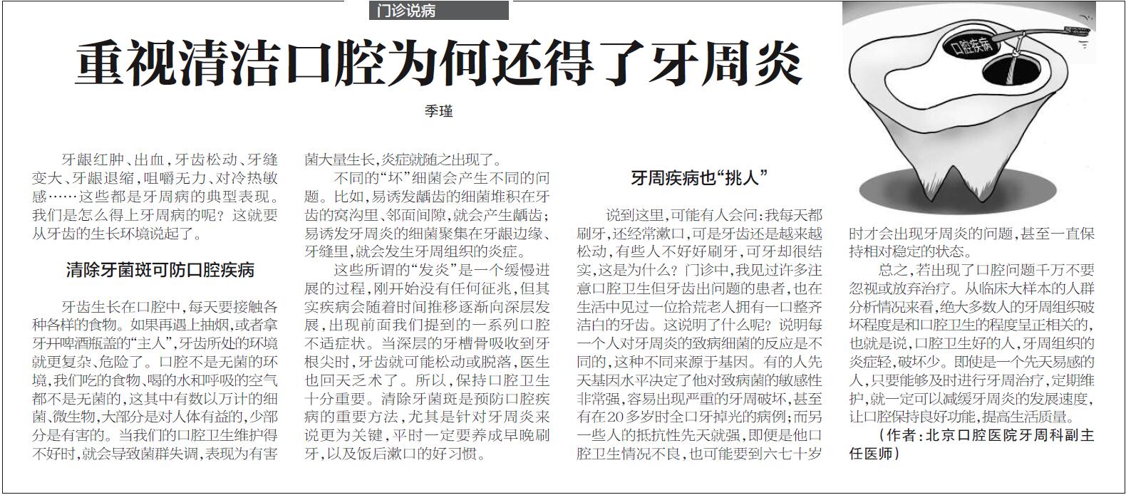 【北京日报】重视清洁口腔为何还得了牙周炎(2018年9月14日 第19版)