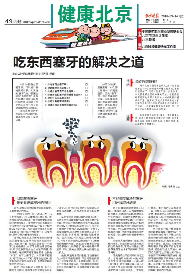 【北京晚报】吃东西塞牙的解决之道(2018年9月14日 第49版)