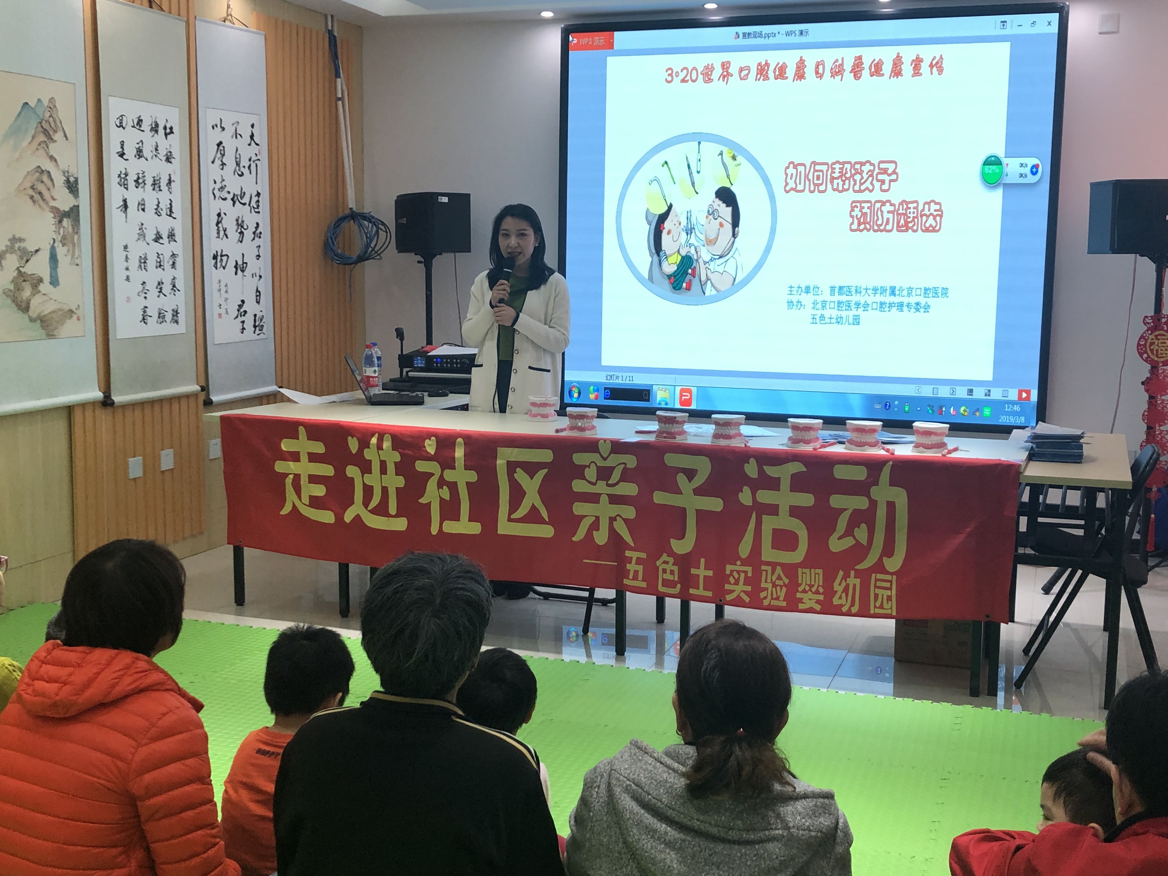 护理部夏爽、儿童口腔科护士任悦、头颈肿瘤科护士陈伟、口腔预防科李国荣一行4人为小朋友及家长进行了口腔健康知识宣传。