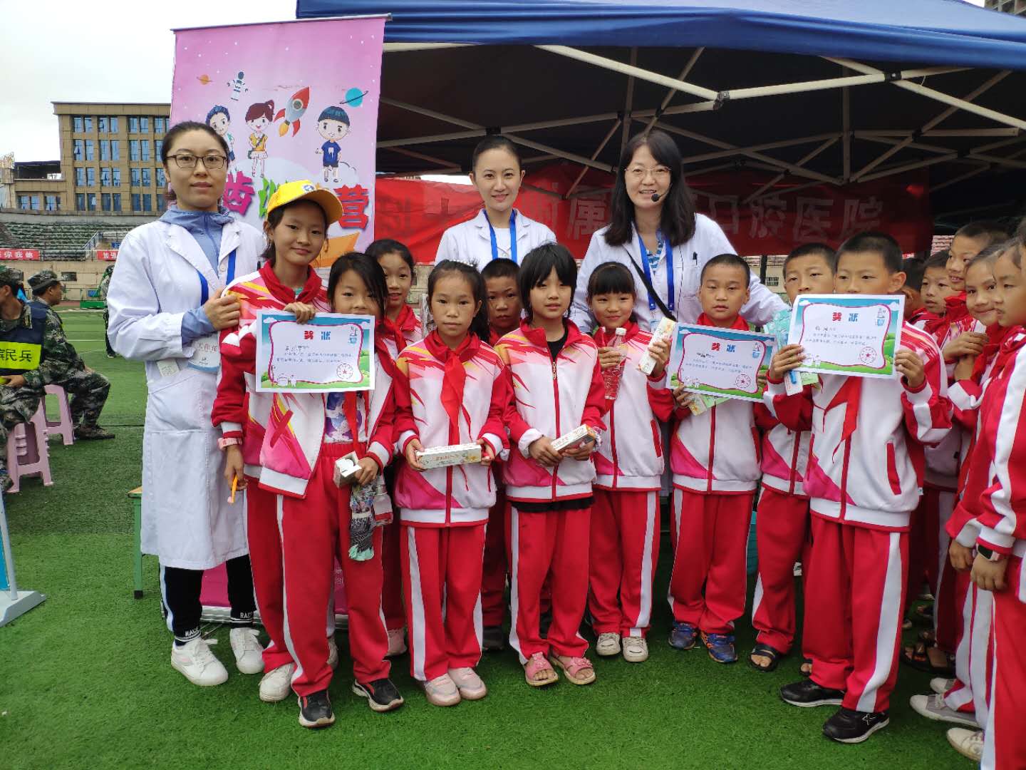 活动最后进行了总结和表彰。在刷牙活动中表现优异的小朋友得到了医务人员颁发的奖状、牙膏、牙刷。