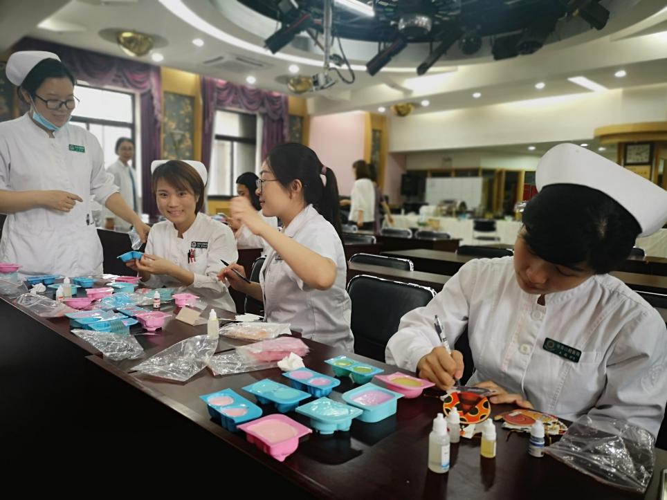 活动现场,老师细致讲解了香皂的制作工艺,并就操作流程和注意事项进行了提示。大家根据个人的喜好选择了不同的颜色、香型、模具,制作出各具特色的手工皂作品,还附上了寄语卡片,期待能够在“六一”节到来之际,为来我院就诊的患儿送上一份美好的祝福。
