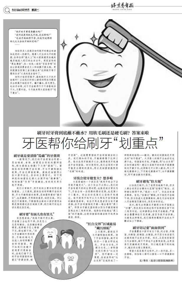 【北京青年报】牙医帮你给刷牙“划重点”(2019年6月25日 B3版 享健康)