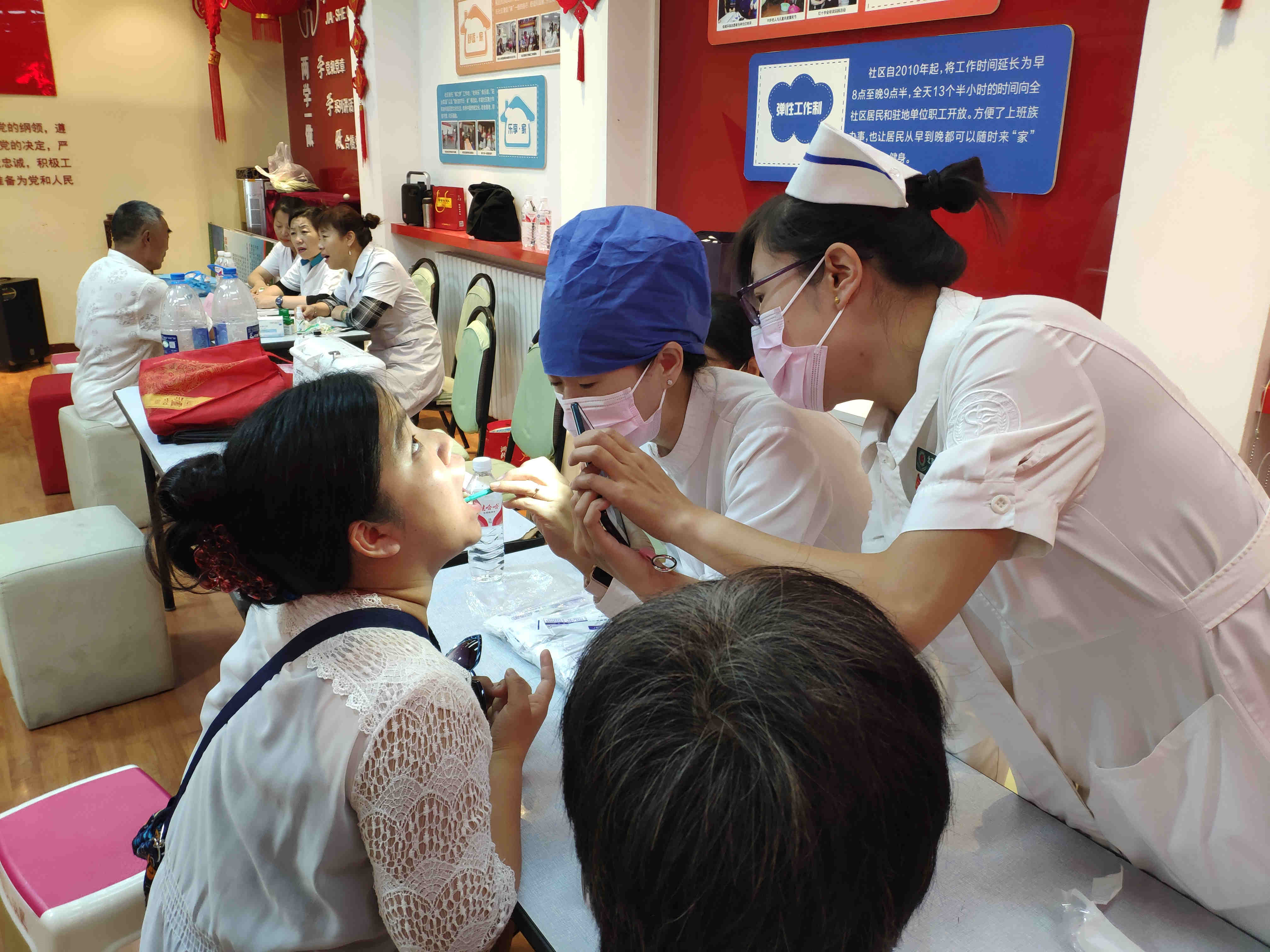 我院王府井部综合党支部和修复工艺党支部组织医护人员参加了活动。大家为前来参与活动的党员和社区居民进行了检查咨询和专题宣教,同时向居民们详细讲解了我院挂号就诊流程。