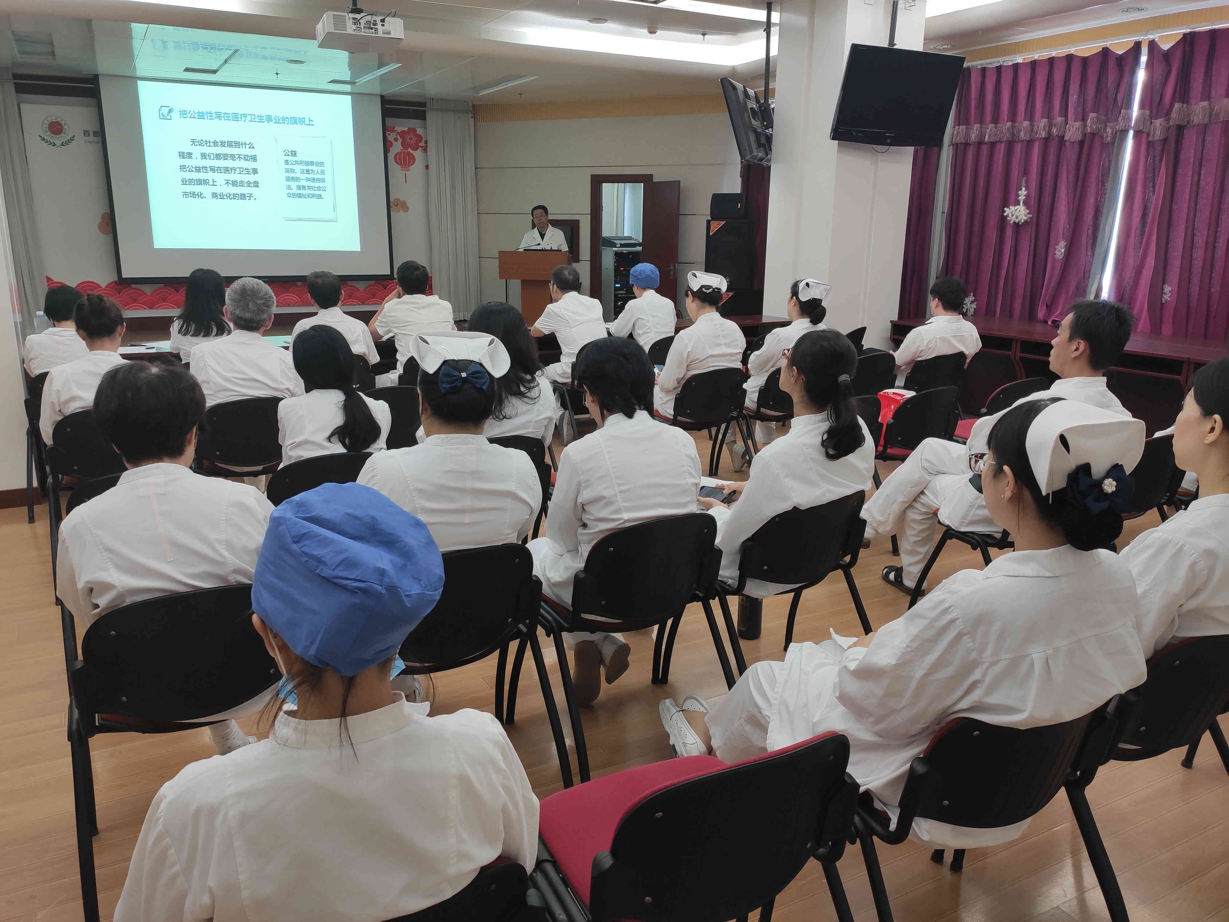 2019年7月23日,我院王府井部开展主题教育活动,党委委员宋鹰围绕“以人民为中心,以健康为根本”主题为全体党员上了一堂生动党课。
