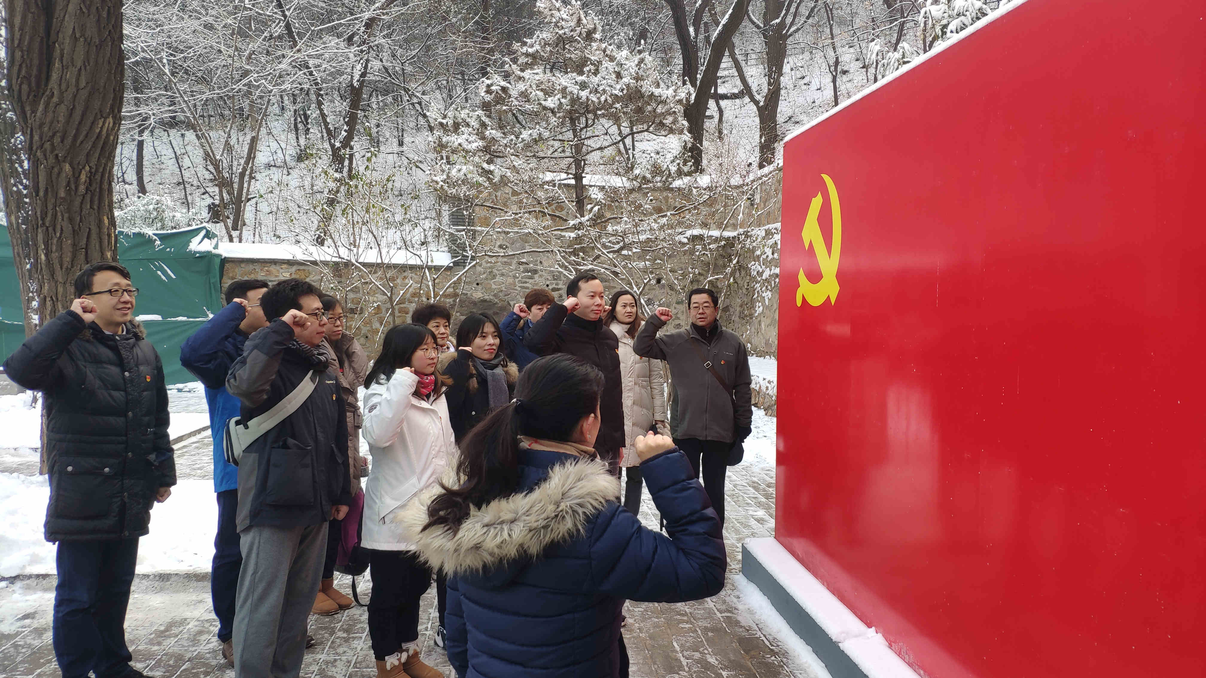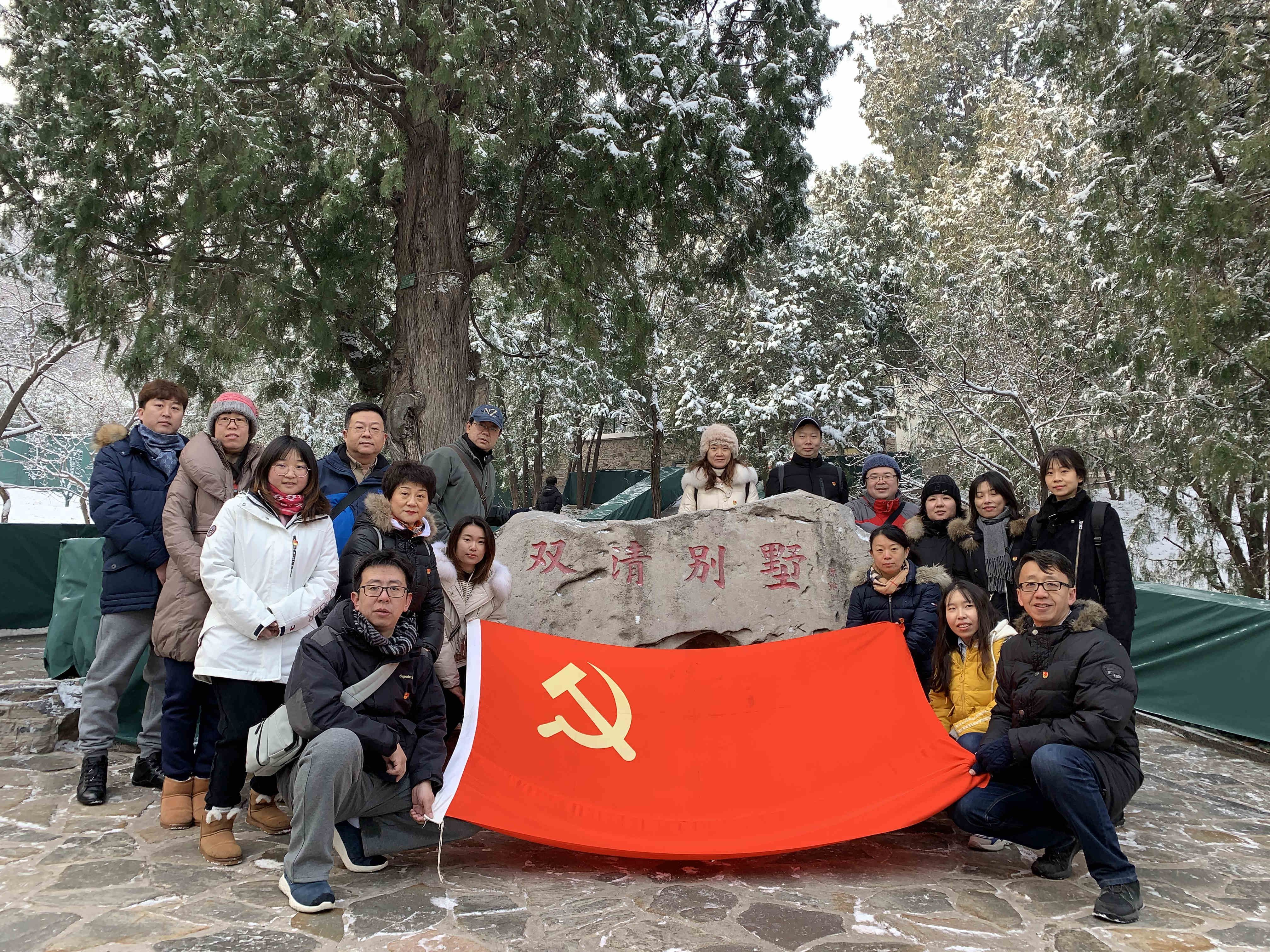 为纪念中华人民共和国成立70周年,深入推动“不忘初心、牢记使命”主题教育工作,王府井部综合党支部于2019年11月30日组织党员和积极分子到香山双清别墅和香山革命纪念馆参观学习。尽管北京刚刚降下初冬的第一场雪,气温骤降,山路泥泞,但同志们参加活动的热情并未有丝毫减退。