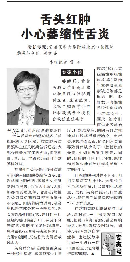 【生命时报】舌头红肿 小心萎缩性舌炎(2019年12月31日 第14版)