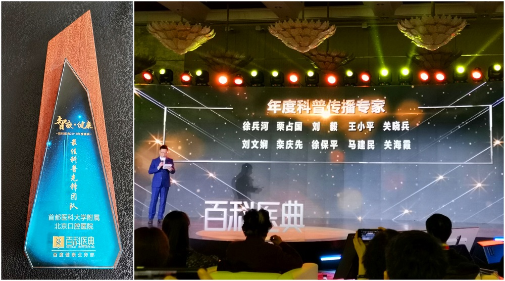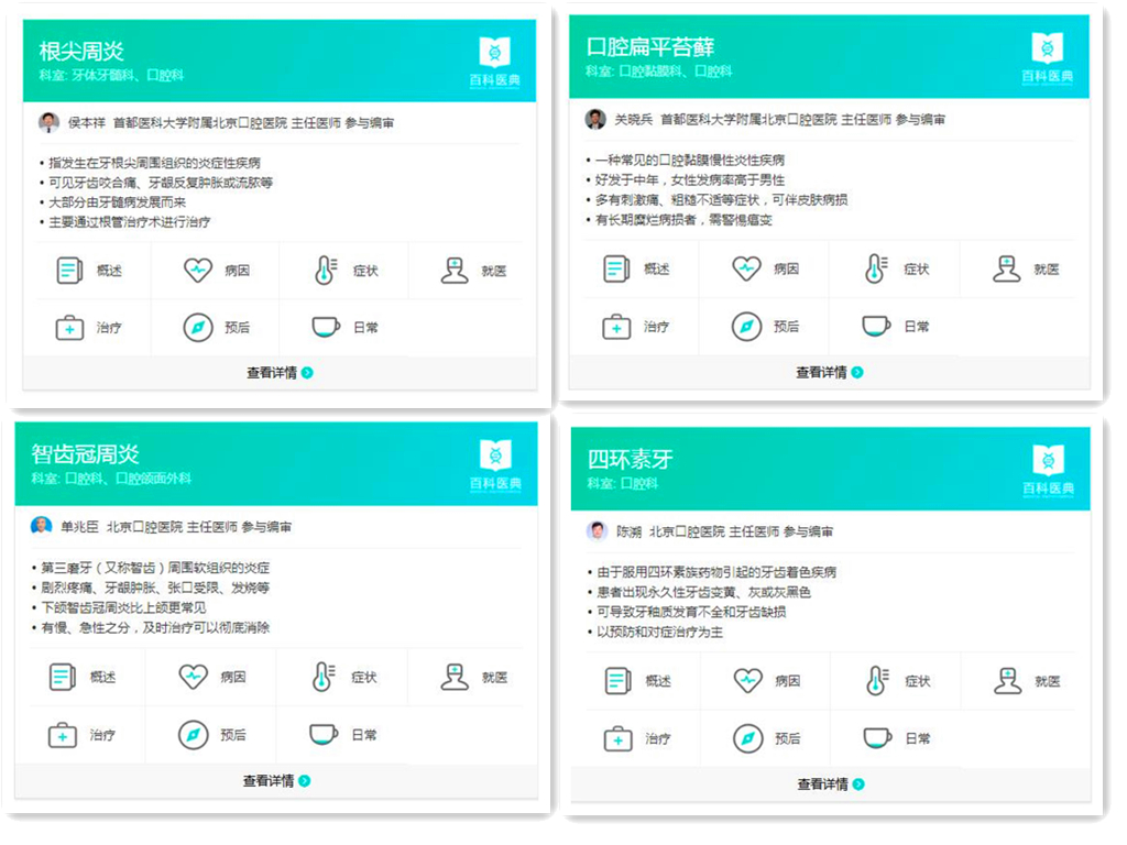 百科医典是百度在2019年6月基于《"健康中国2030"规划纲要》发起的权威健康知识科普公益项目,采用专业医学团队与顶级专家配合编写的形式,联合顶级医疗资源共建权威健康科普平台,与全国400多位专家和60多家权威机构合作,平均每日满足1200万次健康知识搜索需求。我院关晓兵、侯本祥、单兆臣、陈溯等多位专家受邀参与编审,对10余项口腔专业内容进行了权威认证。