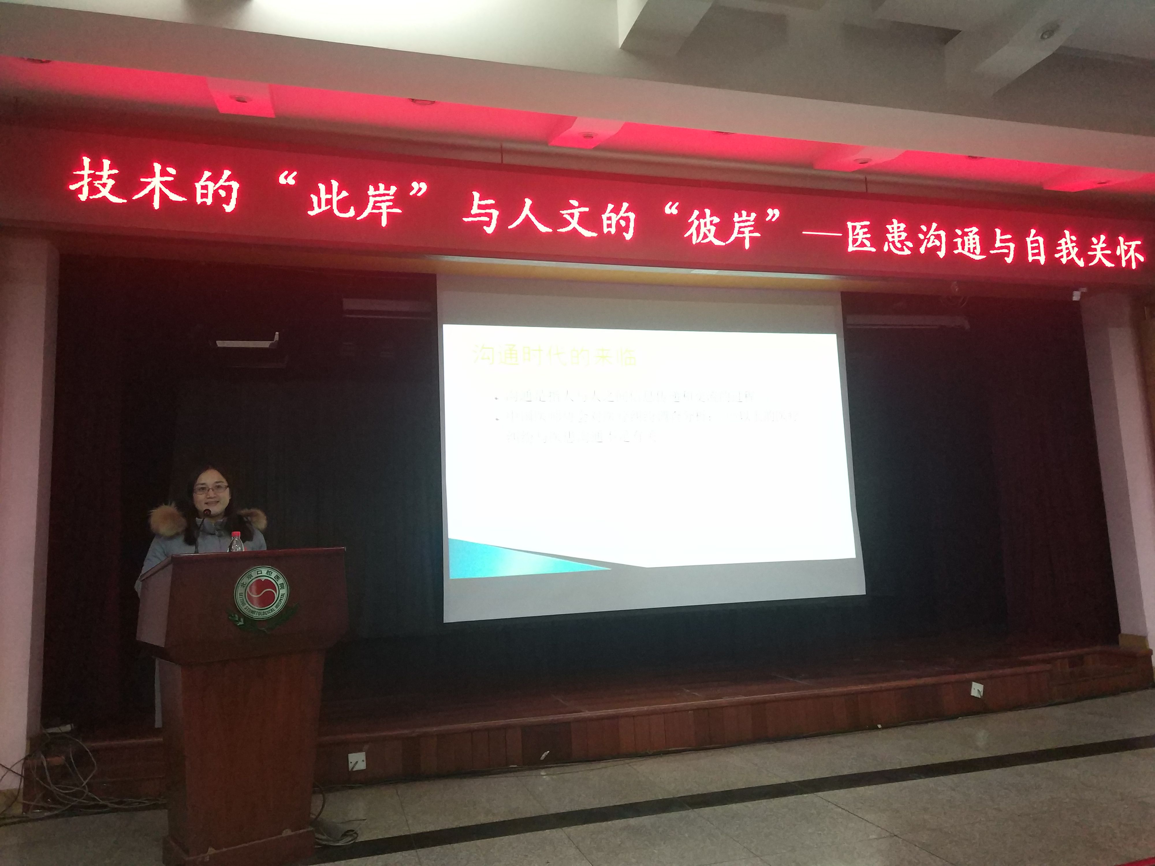 我院综合党支部包含口腔急诊综合诊疗中心、种植中心、特诊特需科、老年口腔科,其中急诊人员工作和精神压力尤为突出,为此,院党委特邀安定医院十四区主任刘竞副教授于1月9日下午在多功能厅为综合党支部及门诊部、工会人员进行了《技术的“此岸”与人文的“彼岸” —— 医患沟通与自我关怀》专题讲座 ,帮助大家调整心态、疏解压力。党委副书记吴缦莉出席,综合党支部书记薛亮主持会议,共30余人参加了学习。