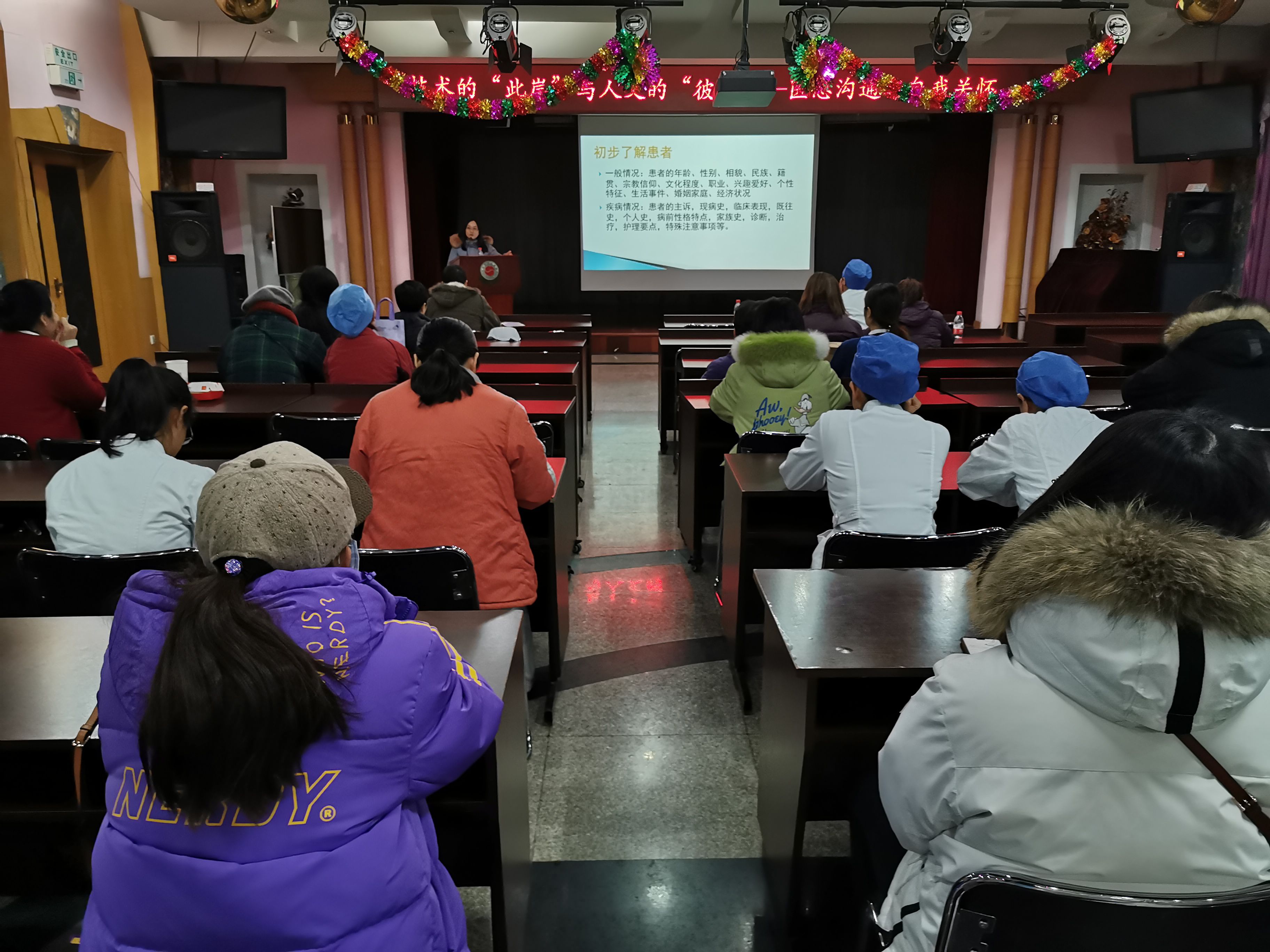 刘主任以心理学为指导,介绍了患者不同层次的心理需求,包括对安全、尊重、沟通的需求,同时介绍了医护人员倾听和述说的艺术。让医护人员充分意识到面对的是人,而非疾病,指出医生不能仅仅治疗疾病。