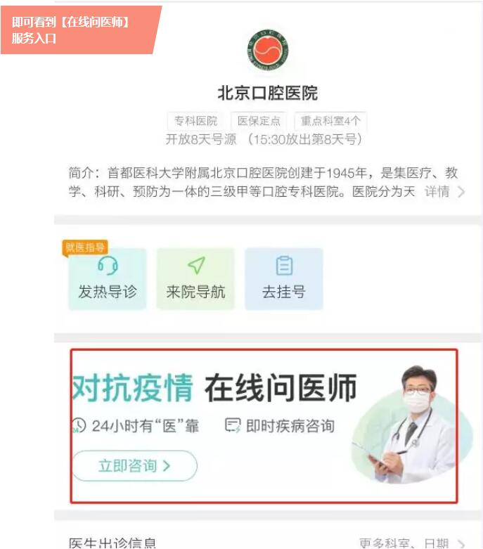 北京口腔医院开通【京医通在线问医生】线上咨询服务