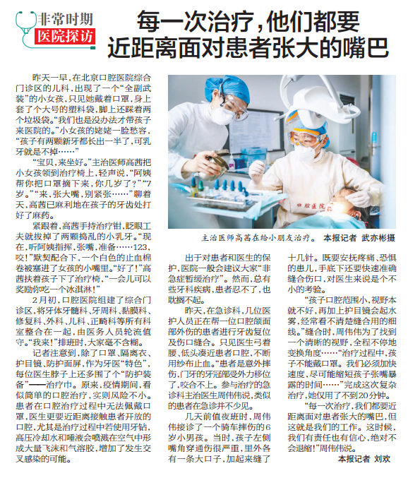 【北京晚报】每一次治疗,他们都要近距离面对患者张大的嘴巴(2020年2月29日 第04版)