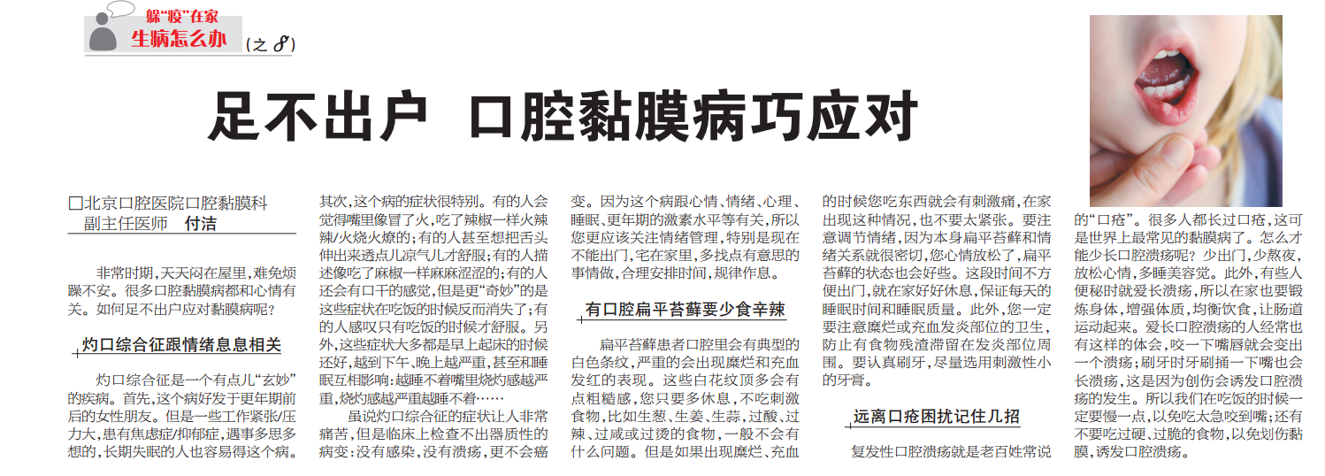 【健康报】足不出户 口腔黏膜病巧应对(2020年3月6日 第4版)