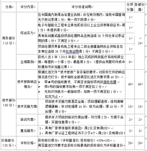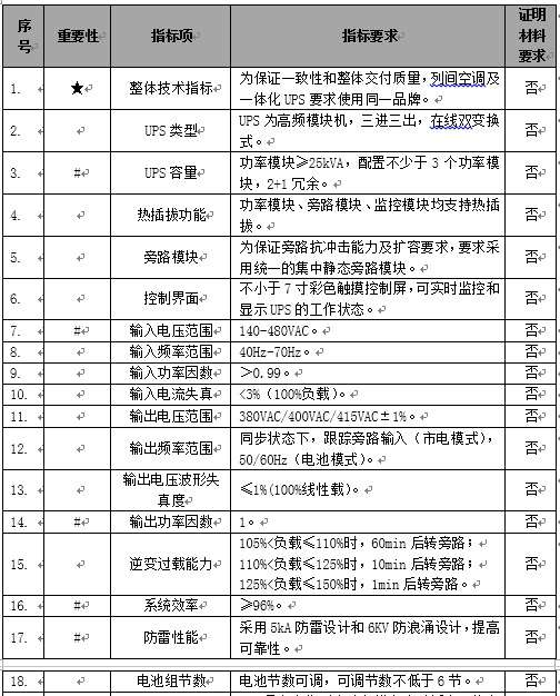 重要性分为“★”、“#”和一般无标示指标。★代表关键指标,不满足该指标项将按废标处理,#代表重要指标,不满足将每项扣2分,无标识则表示一般指标项,不满足将每项扣1分,扣完为止。