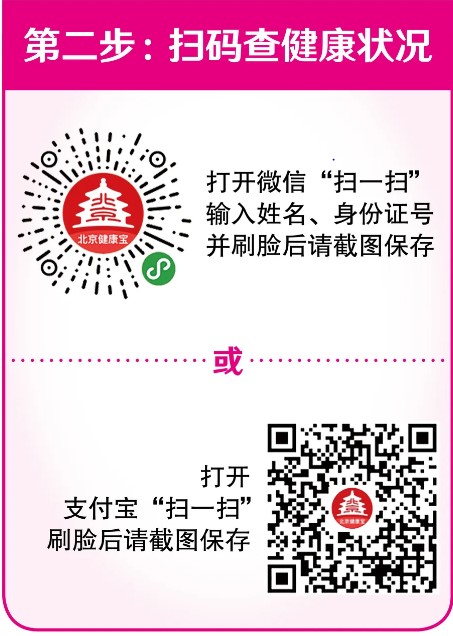 五、进入医院请配合体温测量;进入门诊前,请您主动向工作人员出示预约就诊记录,请配合扫码“疫情防控行程卡”、“北京健康宝”并截图。