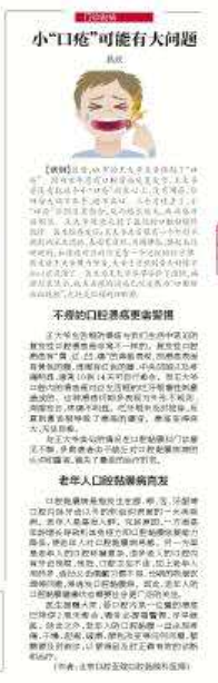 【北京日报】小“口疮”可能有大问题(2020年9月9日 第19版)