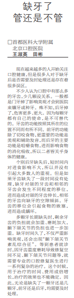 【健康报】缺牙了 管还是不管(2021年6月18日 第8版)