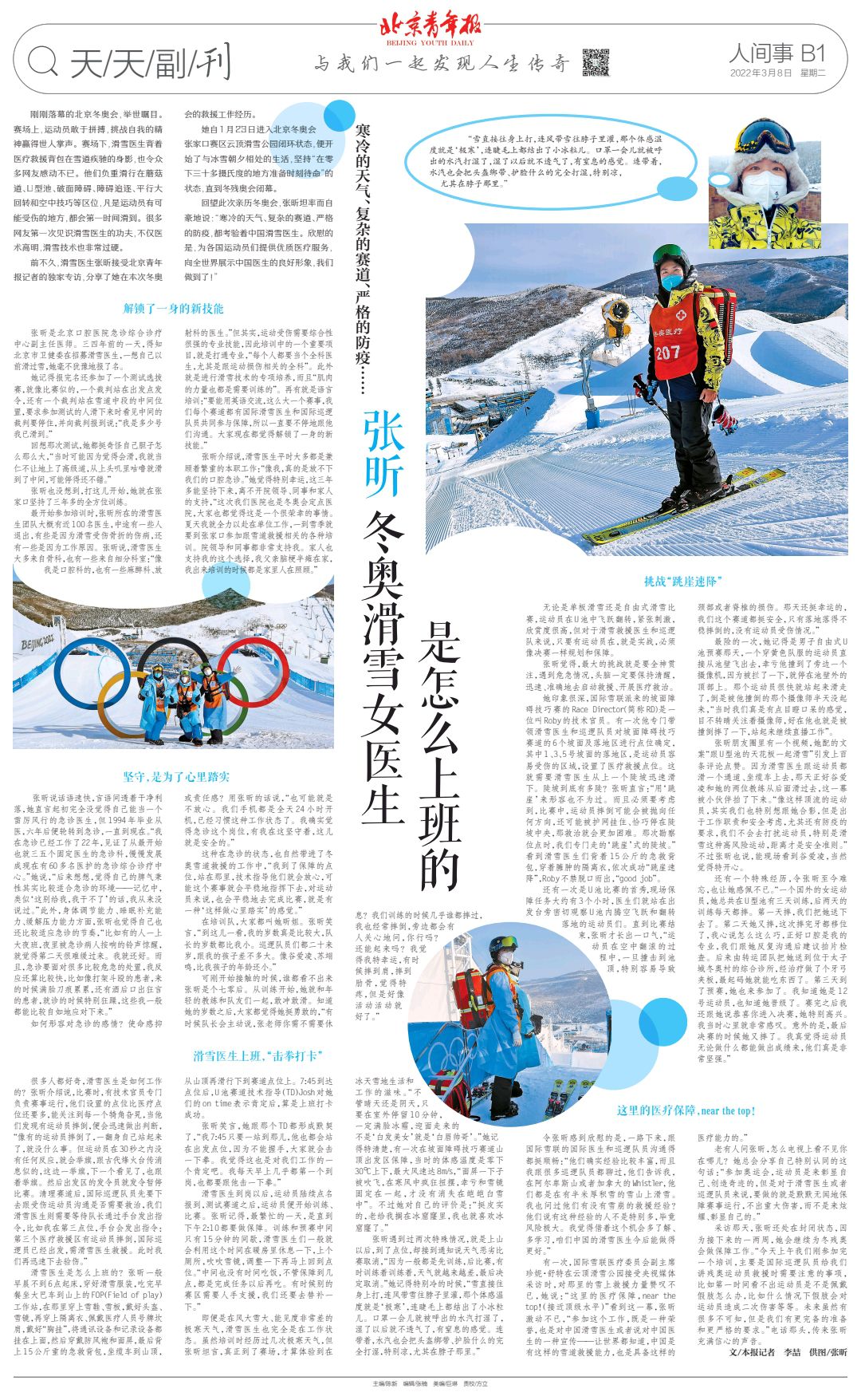 【北京青年报】张昕 冬奥滑雪女医生是怎么上班的(2022年3月8日 B1版)