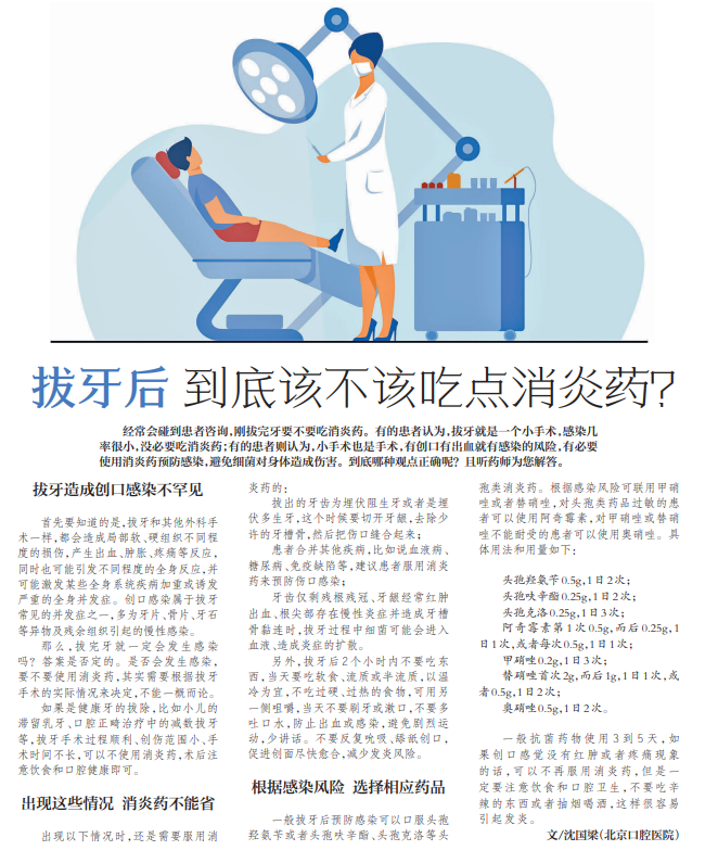【北京青年报】拔牙后 到底该不该吃点消炎药?(2022年7月18日 B4版)