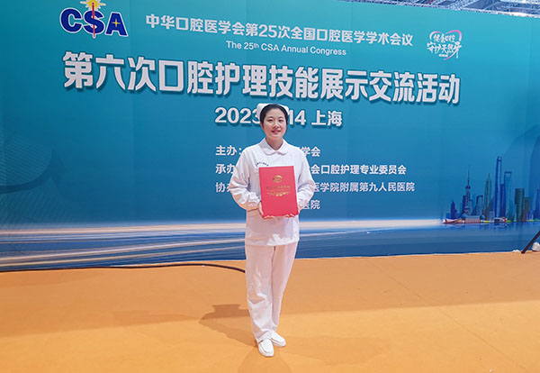 2023年9月12日至14日,中华口腔医学会口腔护理专业委员会第九次学术会议及第六次口腔护理技能展示交流活动在上海举办,我院护理部主任王鸣带领护理团队参会并参加了技能展示活动。