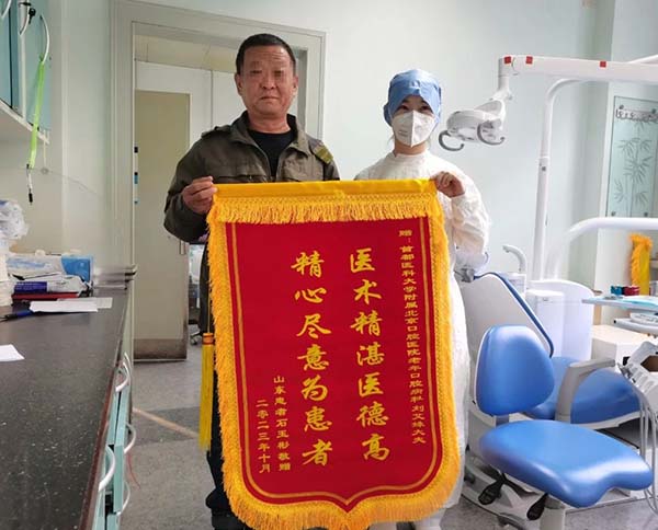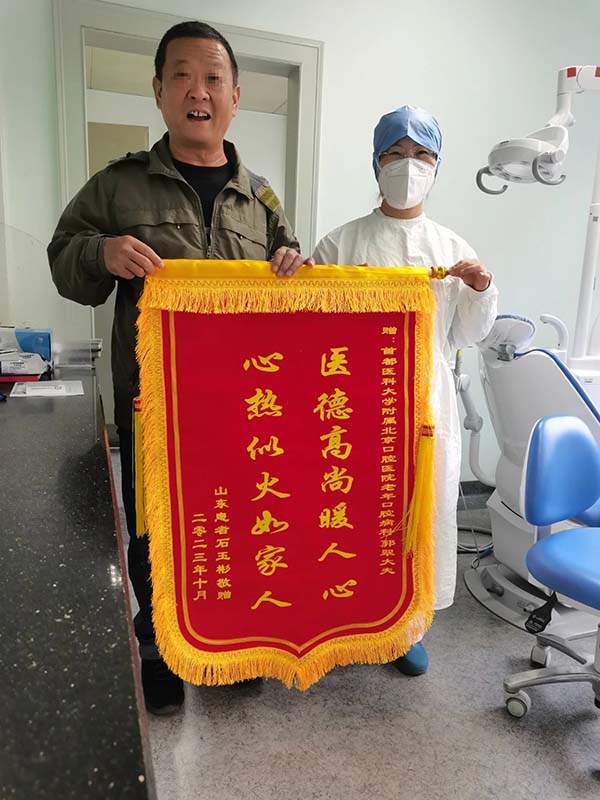 近日,患者石先生到北京口腔医院老年口腔病科送上两面锦旗,对科室医护人员热情的服务和精湛的医术表示感谢。