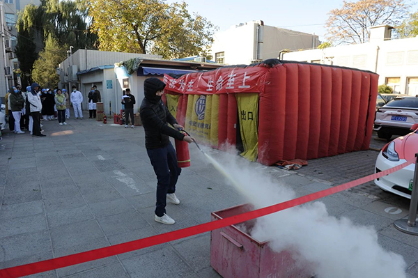 此次比赛贴近实战、务求实效,主要内容包括“消防安全理论知识考试”“报火警和疏散逃生”“灭火器使用”及“消火栓使用”等四部分内容。