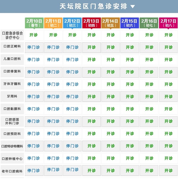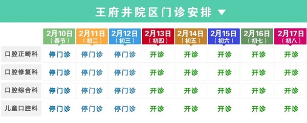 2024年春节期间,北京口腔医院的门急诊安排如下,请广大患者朋友知晓~