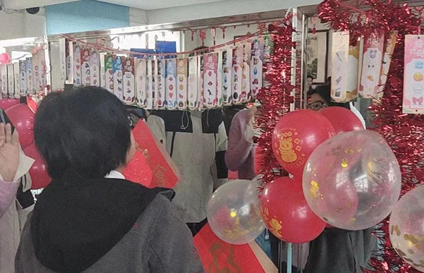 活动当天,大家精心布置了活动场地,挂上了红色的拉花和灯笼,营造出浓厚的春节氛围。