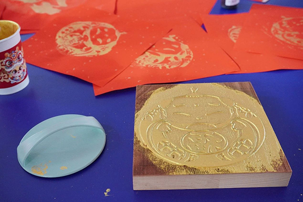 仔细地将红纸铺在石碑上,用墨块轻轻敲打,大家亲手拓印吉祥图案,体验传统文化的魅力。不一会儿,一幅幅精美的拓印作品便呈现在眼前。