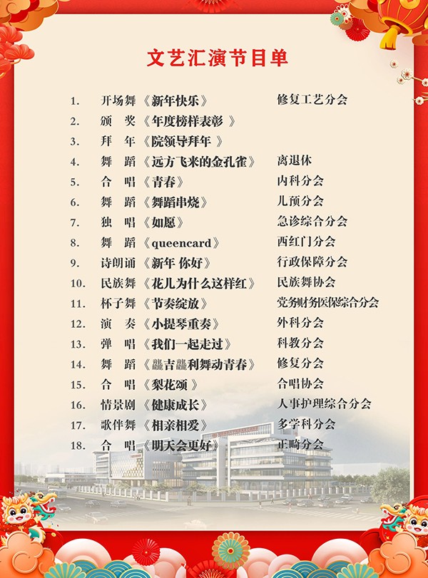 龙年盛世欢歌起,岁月峥嵘谱新篇。北京口腔医院于2024年2月7日下午在天坛院区多功能厅举行“年度榜样”表彰大会暨职工春节文艺汇演,表彰先进、凝聚力量,为全体职工带来一场精彩纷呈的文艺盛宴,共同庆祝新春佳节的到来。