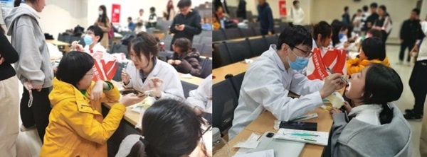 之后,来自牙体、牙周、修复、正畸等专业的优秀博士生、硕士生们为大家进行了口腔义诊检查,提出诊疗建议和保健指导。宣讲活动在同学们的积极参与互动中落下帷幕。