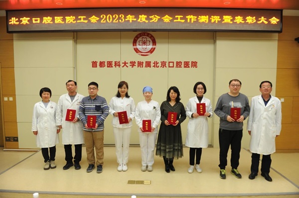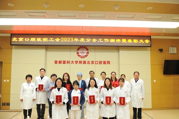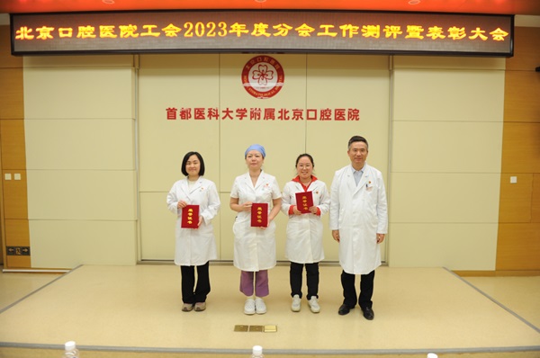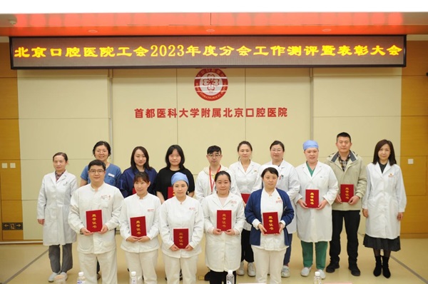2024年4月12日下午,北京口腔医院工会在教学楼阶梯教室召开2023年度分会工作测评暨表彰大会。党委书记丁枭伟、工会主席黄欣,评委、监票员、各分会主席及工会优秀积极分子参加。会议由黄欣主席主持。