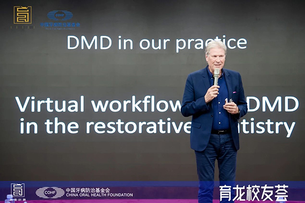 在主题演讲环节,Werner Schuup教授以《无托槽隐形矫治技术的新进展——椅旁操作及虚拟颌架》为题,详细介绍了椅旁隐形矫治从设计到制作的全流程操作,并分享了其最新研究成果。他强调正畸治疗中关节位置的重要性,并为我们展示了采用虚拟颌架辅助正畸治疗的过程。其团队的专家又分享了采用虚拟颌架进行口腔修复的病例,展示了该技术在口腔修复和颞下颌关节疾病治疗方面的应用前景。