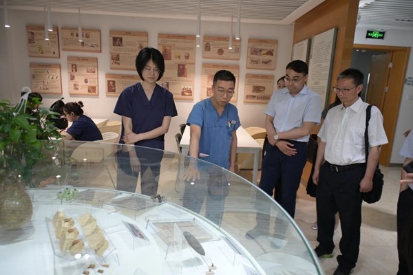 随后,调研组一行先后实地考察了口腔急诊综合诊疗中心、口腔医学史馆和麻醉科。了解了口腔急诊就诊流程、绿色通道设置以及急症诊疗高效运转和医疗质控全面升级的管理模式;从一张张照片、一件件实物、一段段历史中感受了口腔医学的历史和记忆,见证了口腔医学随时代的进步;在麻醉科浓墨飘香的福字走廊、祥龙腾飞的寄语文化墙、丰富多彩的支部党建角中切身体会了“家”文化的温馨与和谐。