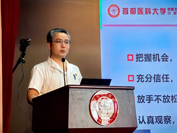 随后,正畸党支部马雁崧同志以《中国正畸,从跟跑到领跑》为题,从口腔正畸的历史讲到人工智能辅助正畸系统的研发,生动体现出青年人对口腔健康中国梦的不懈追求。