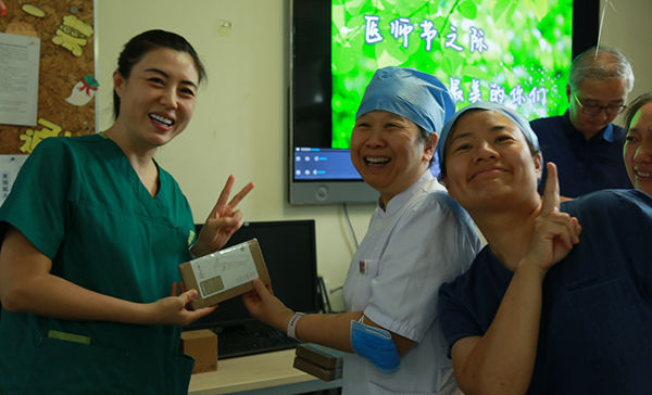 科室精心筹备,为每位医师量身定制了专属姓名的马克杯,以“盲盒”的形式随机抽取。医生们带着期待,随机选择,亲手打开,一份份惊喜送至相应姓名医生的手中,伴随着一句句诚挚的“医师节快乐”,传递了节日的欢愉,让这份特别的礼物成为了大家心中难以忘怀的美好记忆。