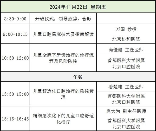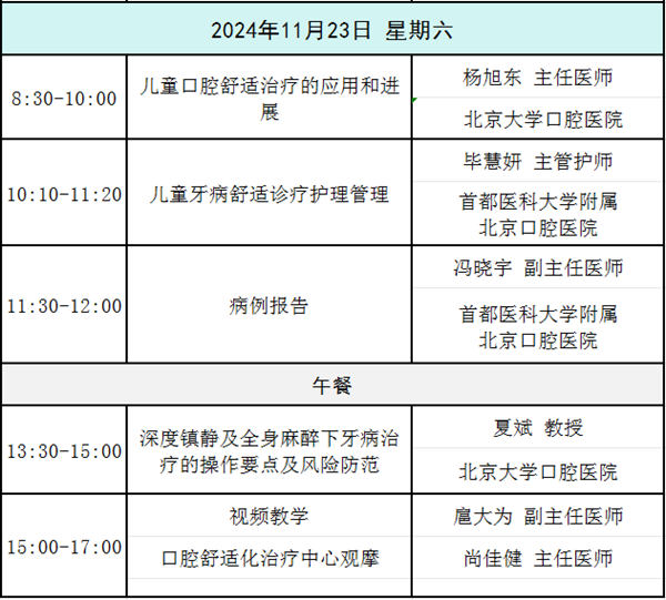 首都医科大学附属北京口腔医院定于2024年11月22日—23日在北京举办市级继续医学教育项目《儿童口腔镇静镇痛技术临床应用学习班》(市级继续医学教育Ⅰ类学分4分)。邀请北京镇静镇痛学界具有丰富科研和临床经验的医疗及护理专家进行专题授课。通过病例展示、现场观摩和视频教学,帮助医护人员深入理解相关技术用于儿童牙病治疗的理论基础、临床操作流程和诊疗护理规范。