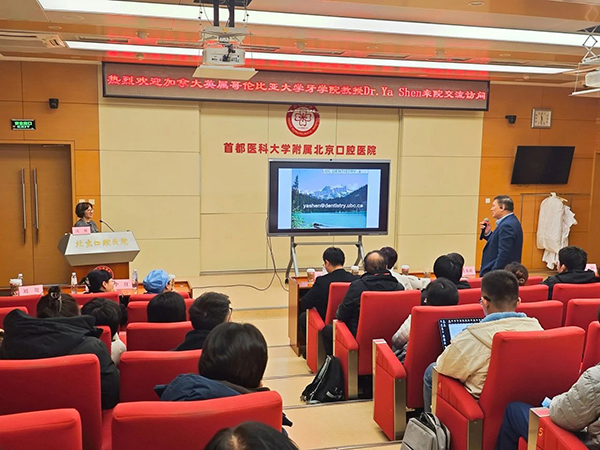 2024年11月25日上午,北京口腔医院阶梯教室内座无虚席,加拿大英属哥伦比亚大学牙学院沈雅(Ya Shen)教授及其助教刘贺博士到访并进行学术讲座;我院相关科室专家、医护人员、科研人员、医学生及市属医院部分口腔科主任150余人济济一室。