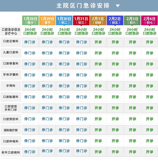 2025年春节期间,北京口腔医院的门急诊安排如下,请广大患者朋友知晓~