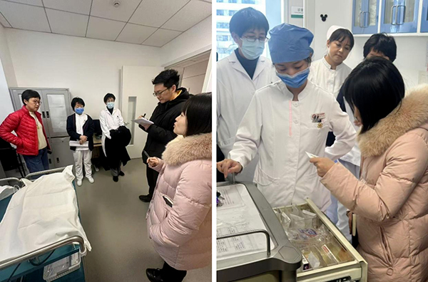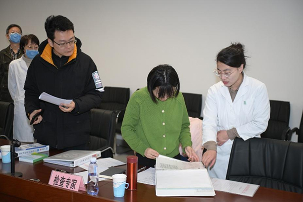 检查组专家先后前往机构办公室、伦理委员会办公室及专业科室,对机构建设、管理制度与SOP、项目质控、资料管理、场地设施及应急处理等方面进行了现场检查与指导。在检查过程中对机构、伦理委员会管理人员及临床试验项目负责人、研究者等相关人员进行了现场提问。专业组研究者熟练准确地回答了检查组提出的有关应急药品储备与使用管理、AED操作等问题。