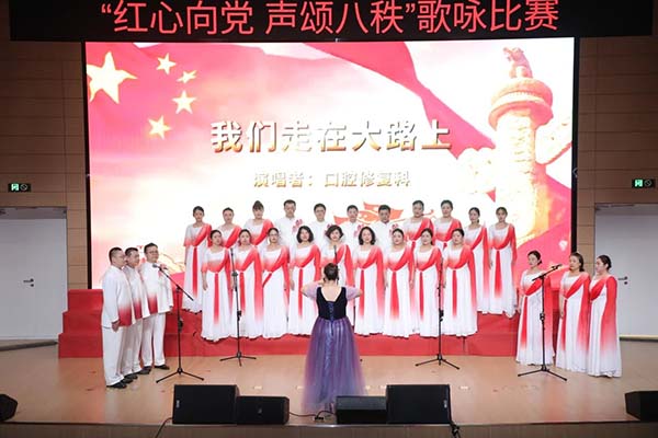6月30日下午,北京口腔医院党委召开庆祝中国共产党成立104周年大会暨“红心向党 声颂八秩”歌咏比赛。