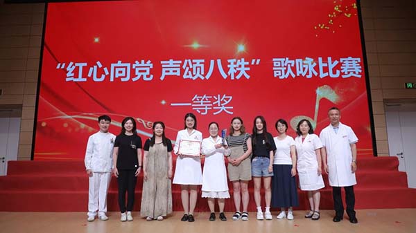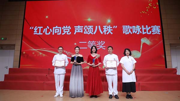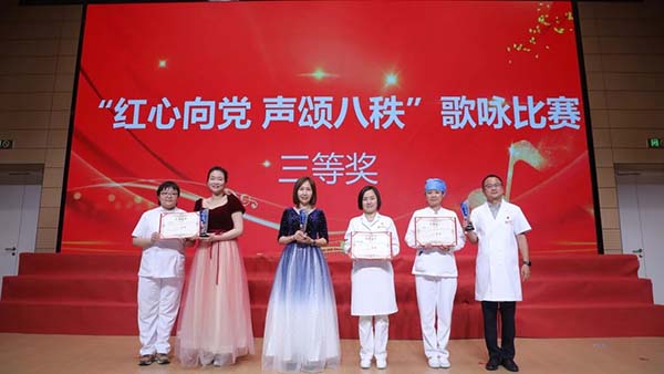 “红心向党 声颂八秩”歌咏比赛,退休合唱队应邀演唱了《映山红》和院歌《守护微笑》,深切表达了对党的无限热爱和对医院的深厚感情。在热烈的掌声中,由各分会组成的16支队伍依次登台演唱。大家用饱含深情的歌声唱响爱党爱国爱院的主旋律,展现了全院职工昂扬向上的精神风貌。