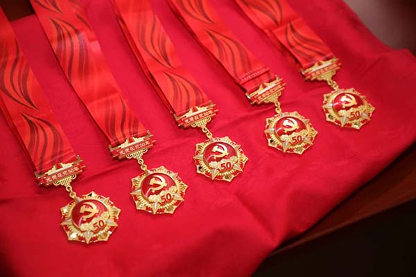 丁枭伟为党龄50年的5位老党员颁发了“光荣在党50年”纪念章并做总结讲话,号召全院党员干部职工,以庆祝建党104周年和建院80周年为新的起点,坚定信心、勇毅前行,为守护人民口腔健康、助力健康中国建设,为推动医院高质量发展,作出新的更大的贡献。
